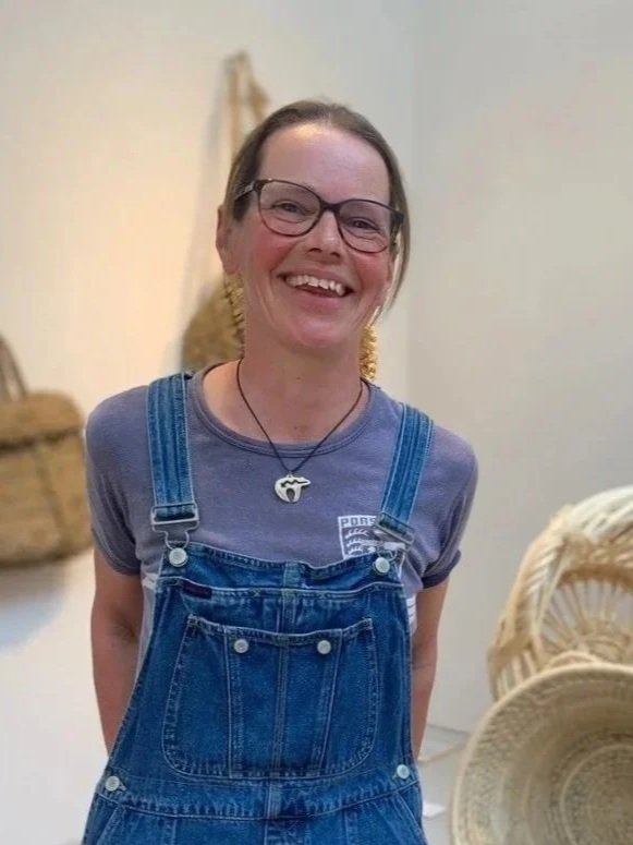 Sam’s experimental work incorporates sea plastic from nearby beaches in her baskets. -